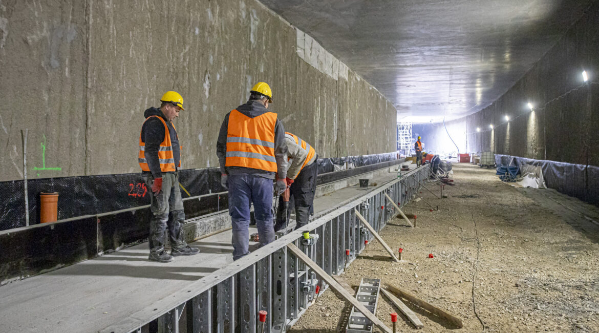 Nowy etap prac w tunelu tramwajowym: wykonawca betonuje pierwsze sekcje płyty torowej. Kontynuowane są także prace konstrukcyjne przy budowie rampy wjazdowej od strony Bitwy Warszawskiej 1920 r. oraz na styku budowanego tunelu oraz wykonanego już korpusu podziemnego przystanku przy Dw. Zachodnim.