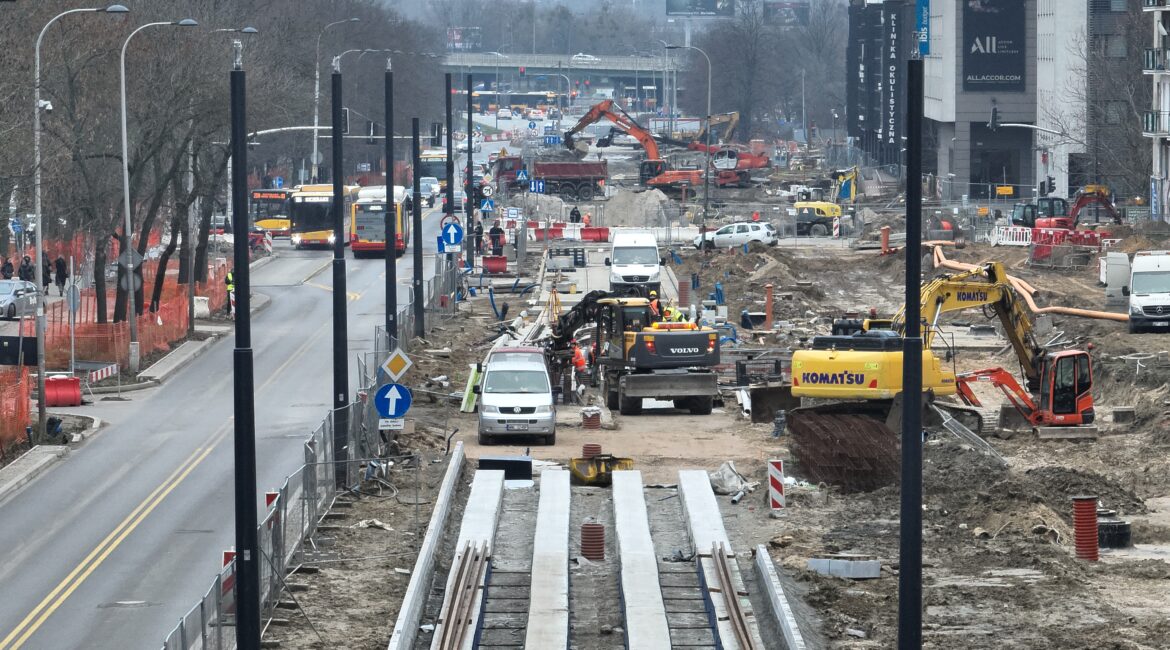 Budowa trasy tramwajowej do Dw. Zachodniego weszła w nową fazę. Wykonawca skończył przebudowę ważnej magistrali ciepłowniczej na ul. Bitwy Warszawskiej 1920 r. W budowanym tunelu tramwajowym wykonane zostały pierwsze sekcje płyty dennej, czyli przyszłej „podłogi” obiektu.