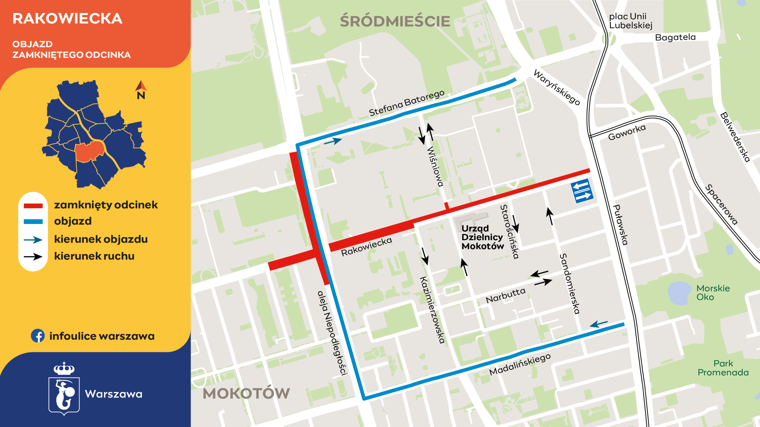 Otwarta zostanie ulica Wiśniowa po południowej stronie Rakowieckiej. Na odcinek pomiędzy Narbutta a Rakowiecką wróci jeden kierunek ruchu. Kierowcy przejdą do Rakowieckiej, ale na skrzyżowaniu będą musieli skręcić w prawo lub lewo. W dwóch kierunkach pojadą także na Rakowieckiej, pomiędzy Wiśniową a Kazimierzowską.