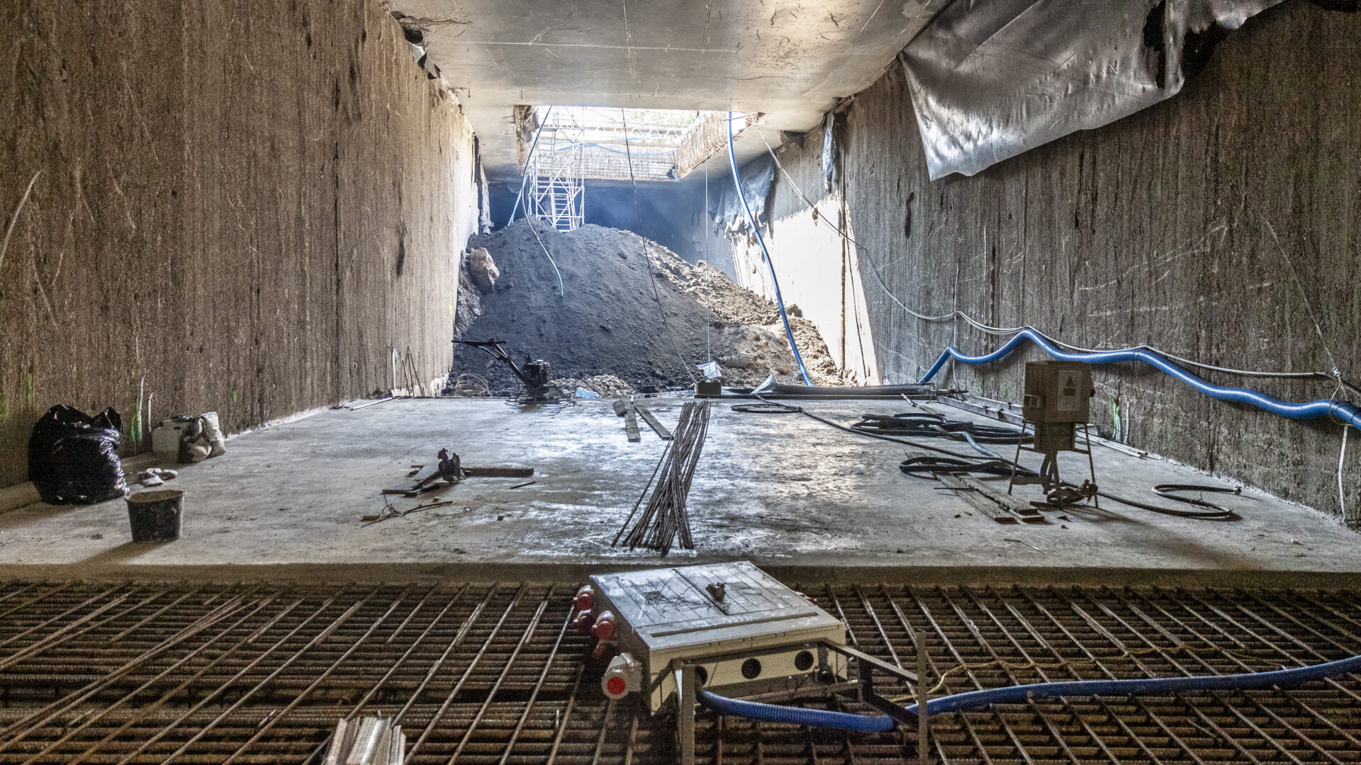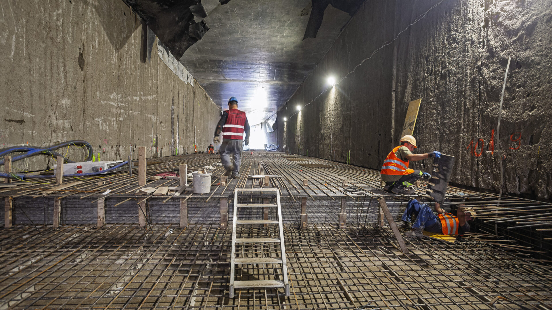 Obecnie trwają prace związane z wykopem podstropowym na terenie parku – pod ziemią, pod gotowym już stropem, pracują koparki, które zwożą urobek, który jest następnie wydobywany przez otwory technologiczne. Na odcinku ok. 300 m tunelu wykonawca dokopał się już do poziomu docelowej głębokości tunelu, która mieści się w przedziale od ok. 10 do 10,8 m. Układane są także zbrojenia pod płytę denną, czyli „podłogę” tunelu – w ostatnich dniach zalano betonem pierwszą sekcję o grubości ok. 1 m.