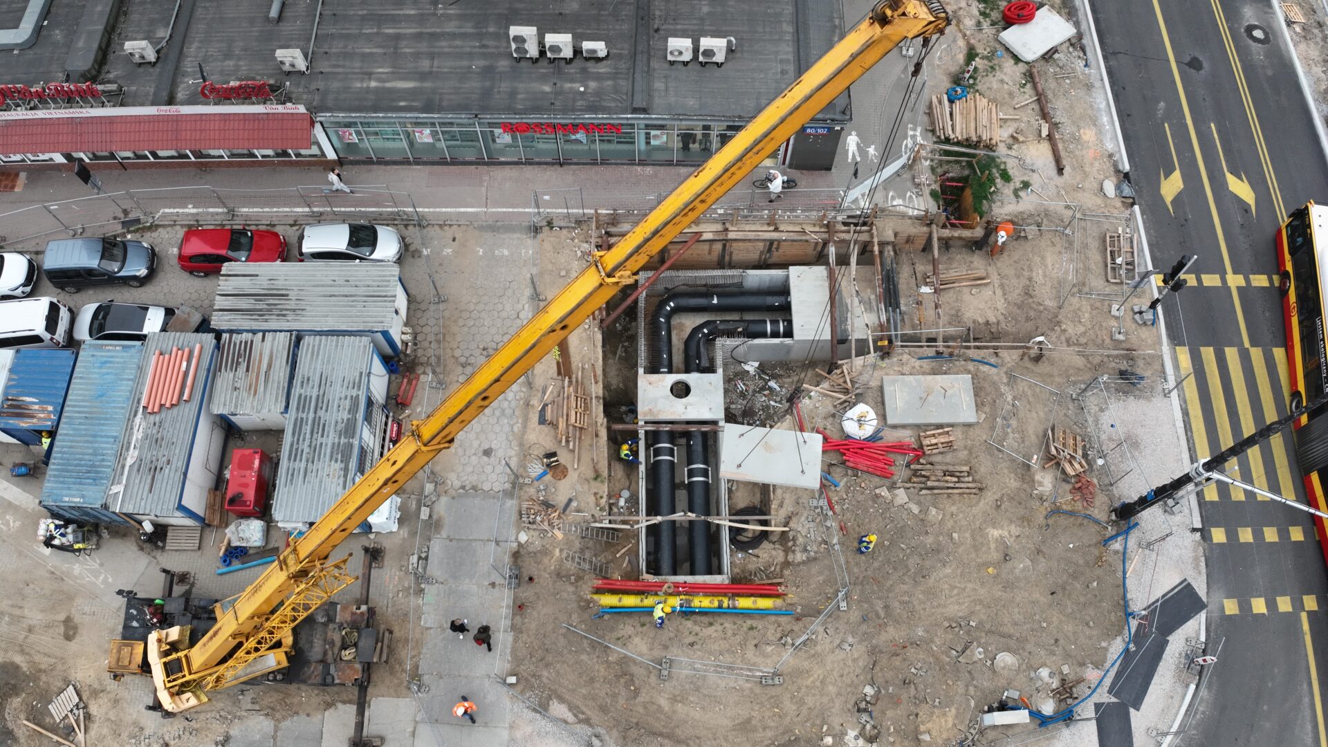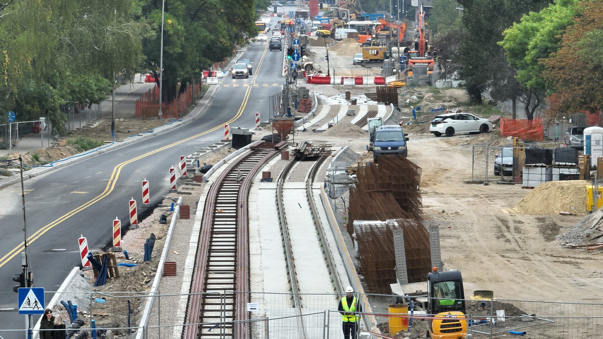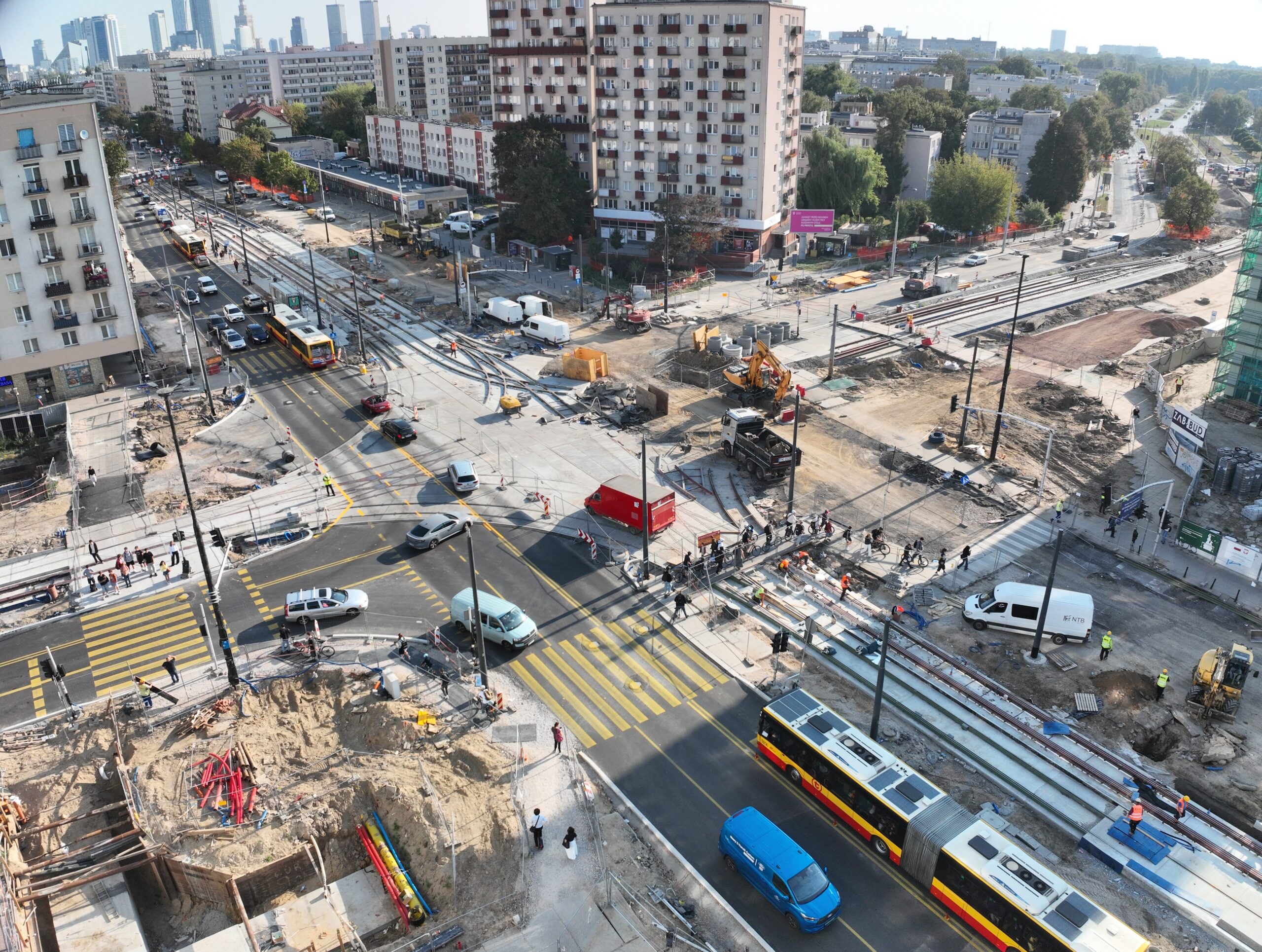 Wykonawca kontynuuje prace przy nowym torowisku. Na ul. Bitwy Warszawskiej 1920 r. leżą pierwsze nowe szyny, a podbudowa torów wykonana jest do wysokości ul. Białobrzeskiej. Teraz, po zakończeniu przebudowy ciepłociągu, wykonawca rozszerzy front robót na powierzchni przy budowie docelowego układu komunikacyjnego.